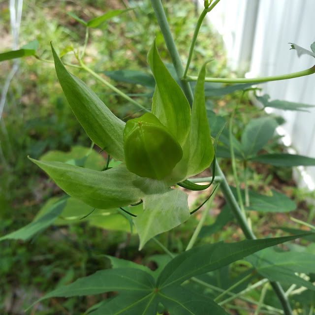 And finally, the native hibiscus bloom is long gone, but it's making a big seed pod. Curious to see how it develops.